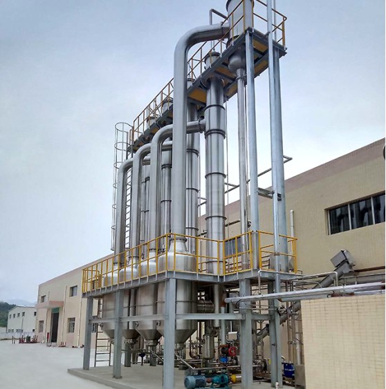 各效蒸發器、各效分離器、冷凝器、熱壓泵、殺菌器、保溫管、真空及排水系統、各效料液輸送泵、分汽缸、操作平臺、電器儀表控制柜及閥門、管路等系統組成。