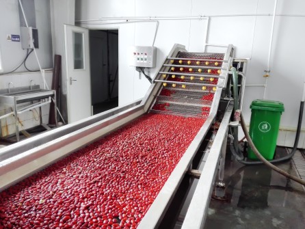 本套生產線適用于棗(椰棗、紅棗)、山楂等核果類水果的加工,可生產干果、干鮮果、濃縮果汁及調配果汁飲料等產品。 該生產線主要由鼓泡清洗機、提升機、檢果機、分級機、瀝水風干機、烘干機、去核機、破碎機、萃取罐、分離機、殺菌機及灌裝機等設備組成。本生產線設計理念先進、自動化程度高;主體設備全部采用優質不銹鋼材質制造,完全符合食品加工的衛生要求。
