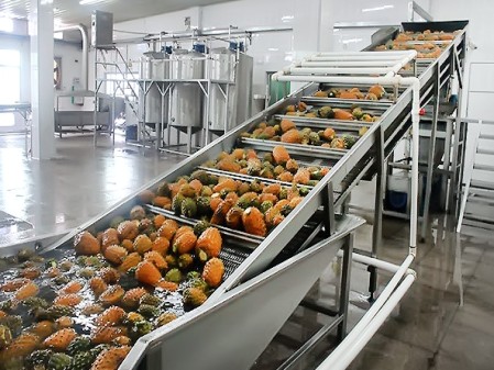 整條生產線自水果破碎開始,物料都在密閉的環境下處理,通過預熱,破碎,酶解,分離、濃縮、殺菌、和無菌環境下灌裝,較大限度的保留了原料的原始風味和營養。壓榨后的菠蘿原汁采用先進的生物酶解及生物絮凝沉淀技術,能夠較大程度的獲取菠蘿汁,并確保菠蘿汁中有效營養成分不流失,能被降解并隨同果汁保留下來,是真正的“全營養”果汁。 操作控制部分采用全自動控制系統,自動故障報警系統,全方位安全保障機制,保障設備及人員安全;所有電控系統零配件均來自于品牌,諸如西門子、歐姆龍等。生產線中的蒸汽控制各類型閥門(極其重要,關系到產品品質)均采用蒸汽控制系統品牌斯派莎克控制精密,可靠性極高,有效保證了不同批次產品質量的單一性,均衡性。