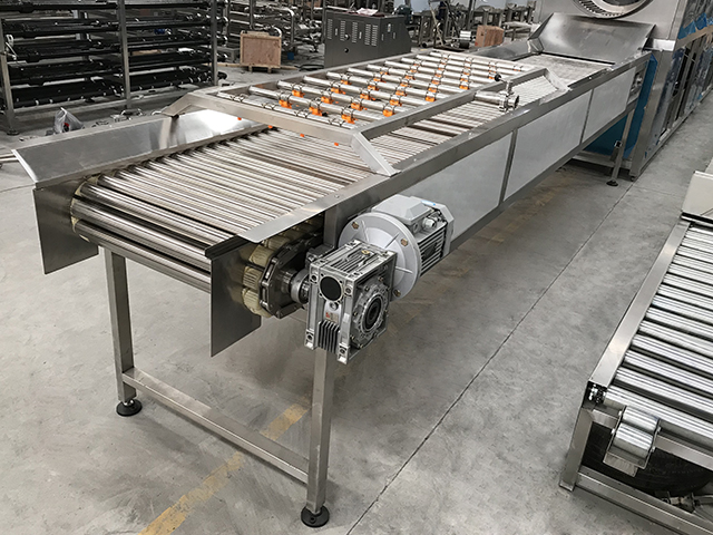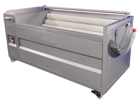 本設備除電機、軸承等標準件外均采用不銹鋼SUS304/2B材料制作,完全符合食品衛生要求。利用高壓水沖擊和承軸旋轉式毛刷的清洗,使雜質漂浮表面,通過溢水口溢出,經過水循環經過濾,在雜質箱沉淀。產品經網帶輸送至出口處。設備清洗效果好,對蔬菜水果大小不限制。