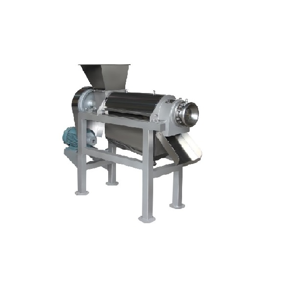 本設備是去核后的果肉、汁、皮通過進料斗進入螺旋榨汁機,在螺旋旋轉方向上螺旋底徑逐漸加大而螺距逐漸減小,當物料被螺旋推進時,因螺旋腔體積縮小,形成對物料的壓榨,其壓榨的汁液通過過濾網流入底部的盛汁器,而廢料則通過螺旋及調壓頭的錐形部分之間形成的環狀空隙自動排出。與物料接觸部分為優質不銹鋼制造。